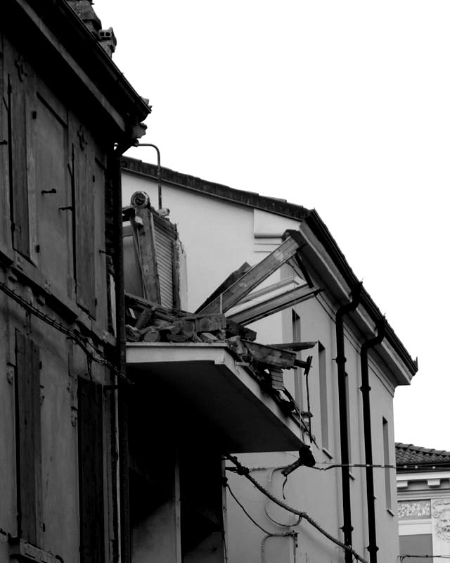 Non a caso gli abitanti di queste terre hanno ancora tanta paura. Un ricordo che ancora non si è metabolizzato, è vivo, presente, evidente nella realtà quotidiana. Una voragine interiore che ha cambiato in qualche modo la vita di tutti. Quando siamo venuti a visitare il paese, dopo le scosse del 29 maggio 2012, ci eravamo prefissati l’obiettivo di seguire l’andamento dei lavori per il ripristino della normalità. Ci ha spinto la ricerca e la volontà di voler documentare con i nostri scritti e con le nostre immagini quanto stava e avvenendo.